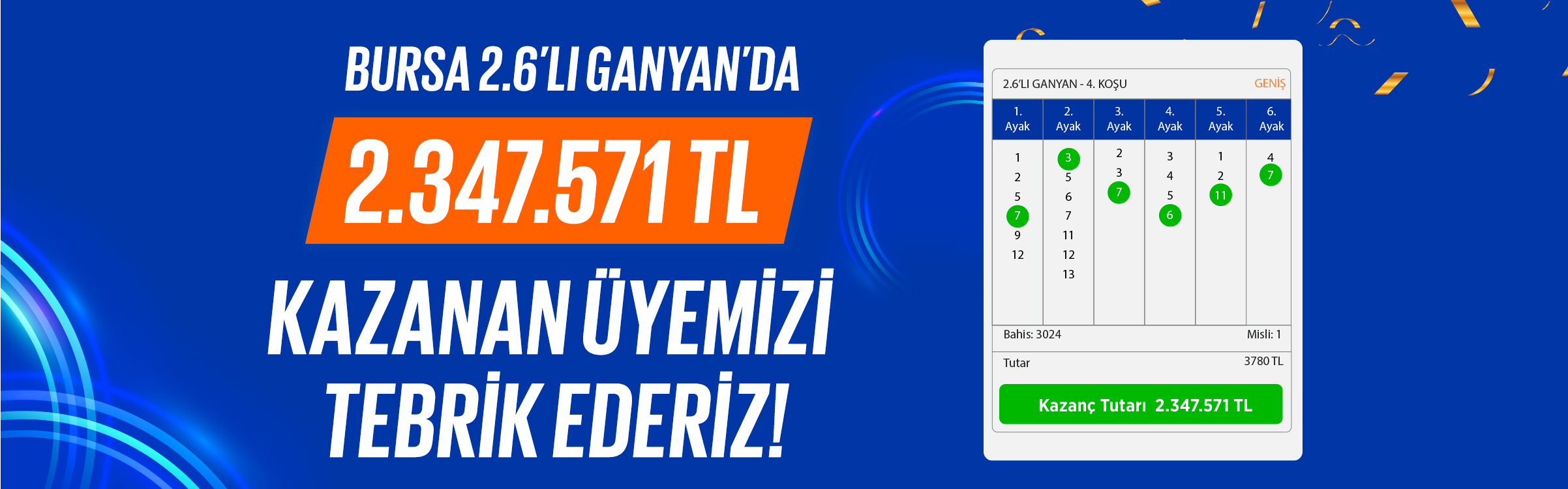 İkinci altılı ganyan başlangıç ayağına banko ile başlayacağım. Risk almazsak büyük ikramiyeyi yakalamak zor olacağı için, ilk defa piste çıkacak isimler arasında görüntü olarak beğendiğim bir ismi yalnız başına bırakacağım. Yarış yaşamına bu koşu ile başlayacak tüm safkanların ayaklarının düz basmasını temenni ediyorum. Pedigri olarak baktığımız zaman, yakın zamanda koşan kardeşleri arasında Muşar Dağı’nı gördüğümüz ve öne çıkıp kazanmayı başarmıştı. Böyle tip yarışlarda öne erken gelen süratli isimlerin kazandığını görüyoruz. Özellikle babasının da piste çıkacak ilk yavrusu oluşu, bir Kaizbert torunu olup idman pistinde iç pistte 800'ü 55 dereceleri kıymetli olsa da özellikle daha kaba olan dış pistte 600'ü 41, sonu 28 işinde akışlı görüntüsü ile CEMİYET HAYATI (2), bir aksilik yaşamadığı takdirde kazanmasını bekliyorum. Siz değerli Son Düzlük üyelerine banko olarak önereceğim.