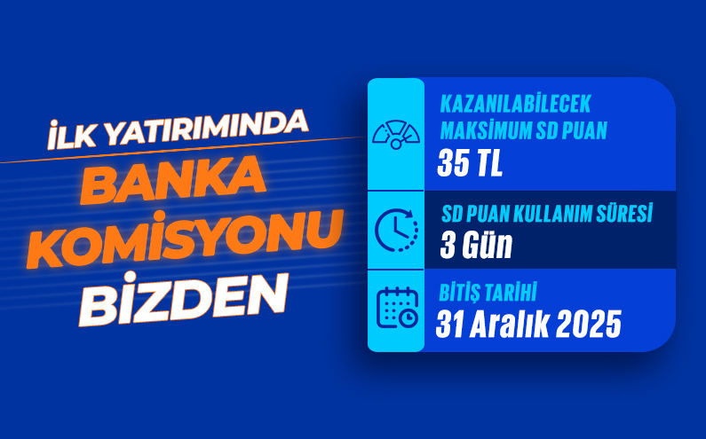 Yeni üyelere ve daha önceden kayıt olup henüz yatırım yapmamış üyelere özel, ilk yapacağın para yatırma işleminde ödediğin banka komisyonu bedeli Son Düzlük’ten hediye!