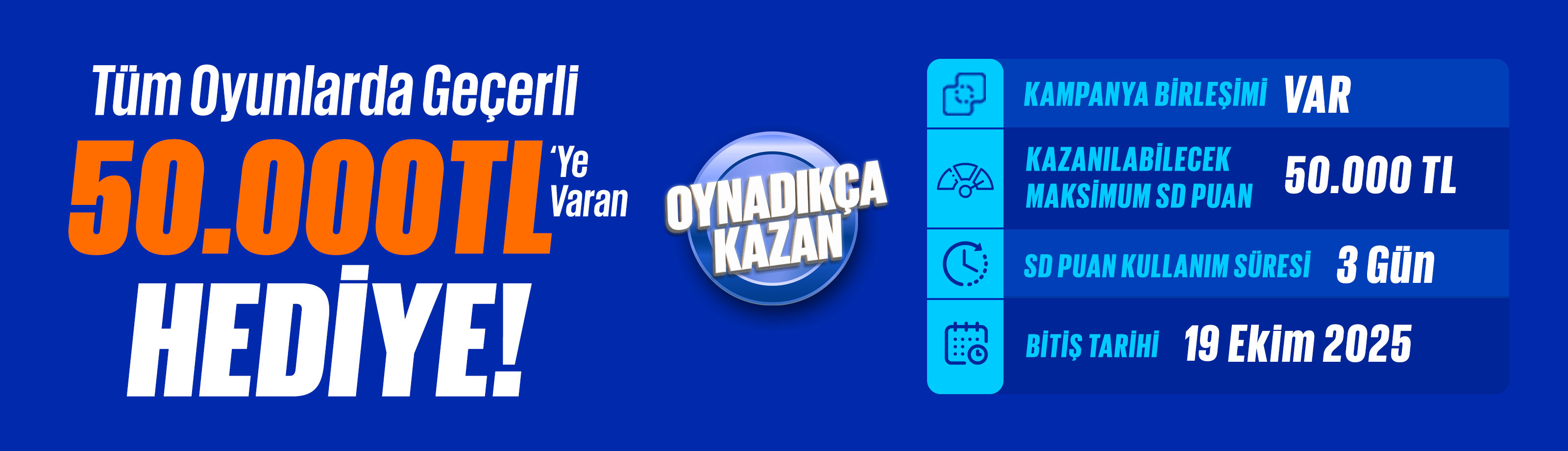 Tüm oyunlarda geçerli, 13 Ekim – 19 Ekim haftası tam 50.000 TL’ye varan hediye fırsatı seni bekliyor!