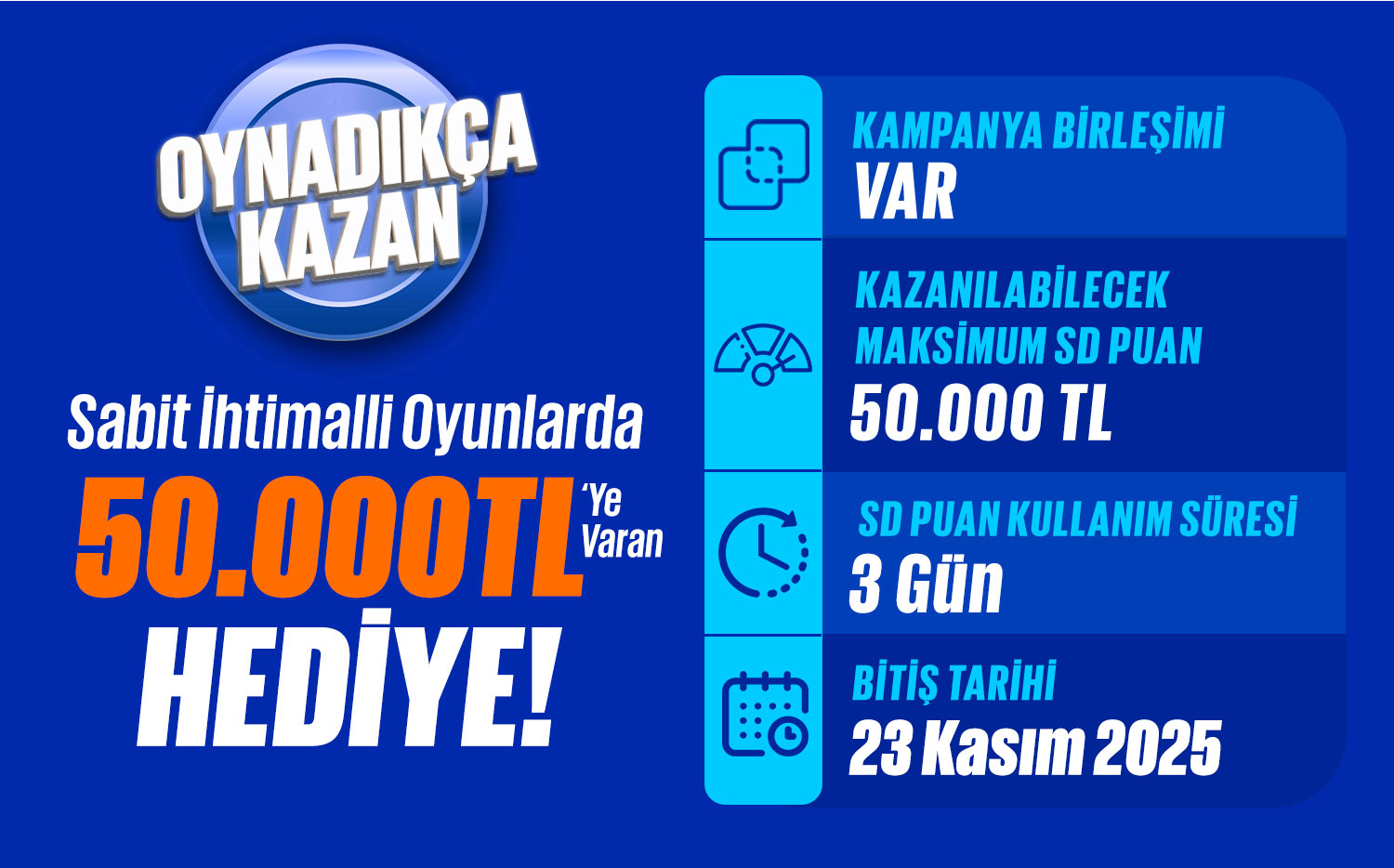 Yalnızca Sabit İhtimalli oyunlarda geçerli, 17 Kasım – 23 Kasım haftası tam 50.000 TL’ye varan hediye fırsatı seni bekliyor!