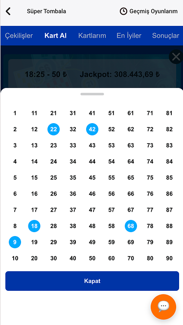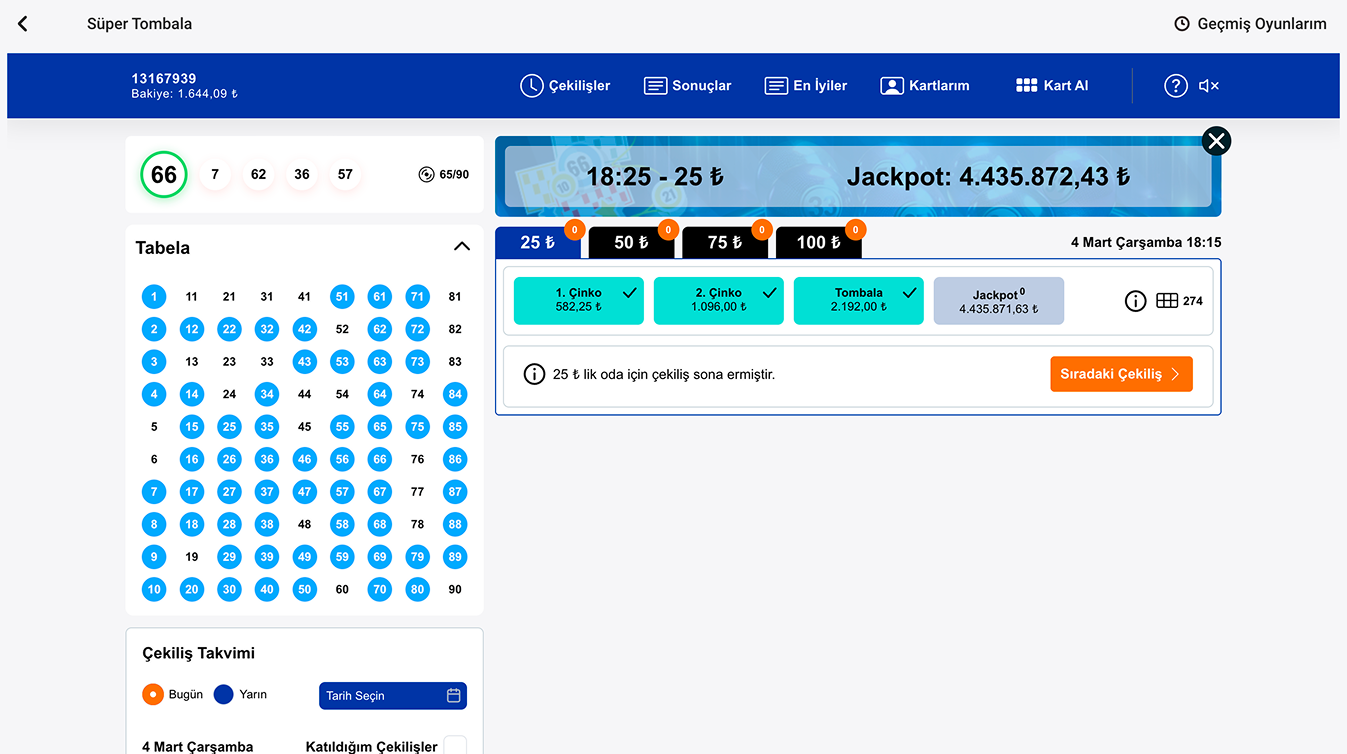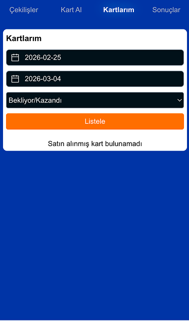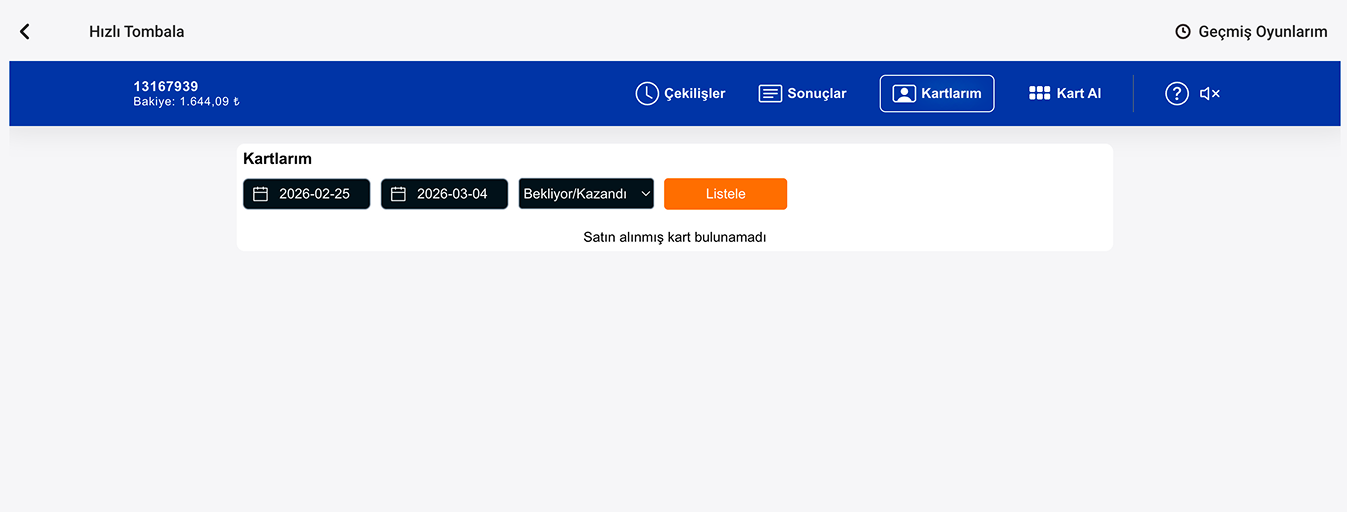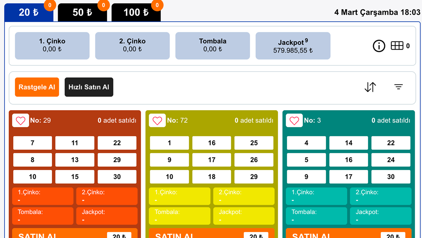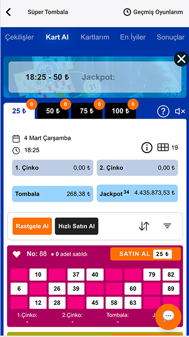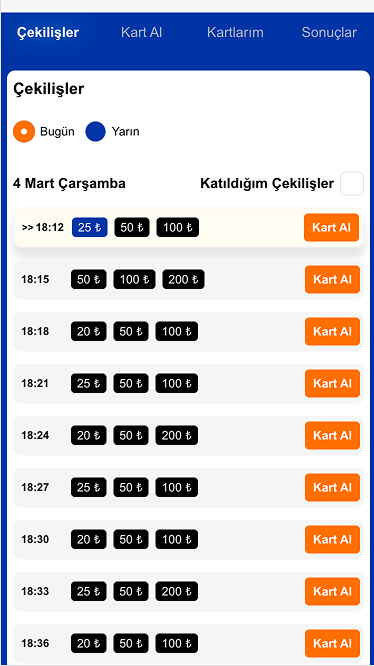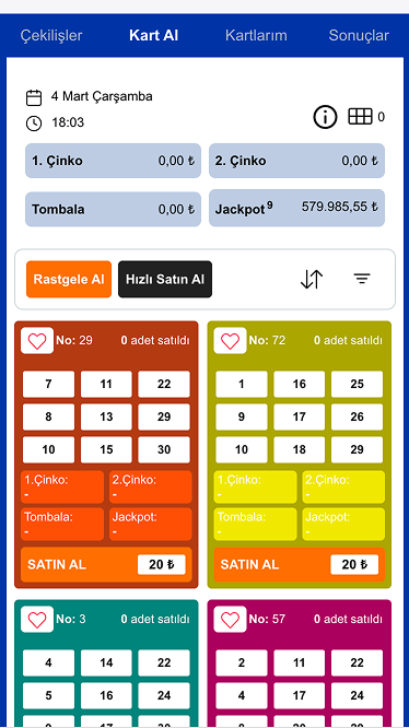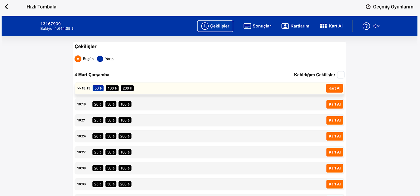 - Çekiliş bülteninde yer alan tüm oyunlar için önceden kart satın alınabilir.