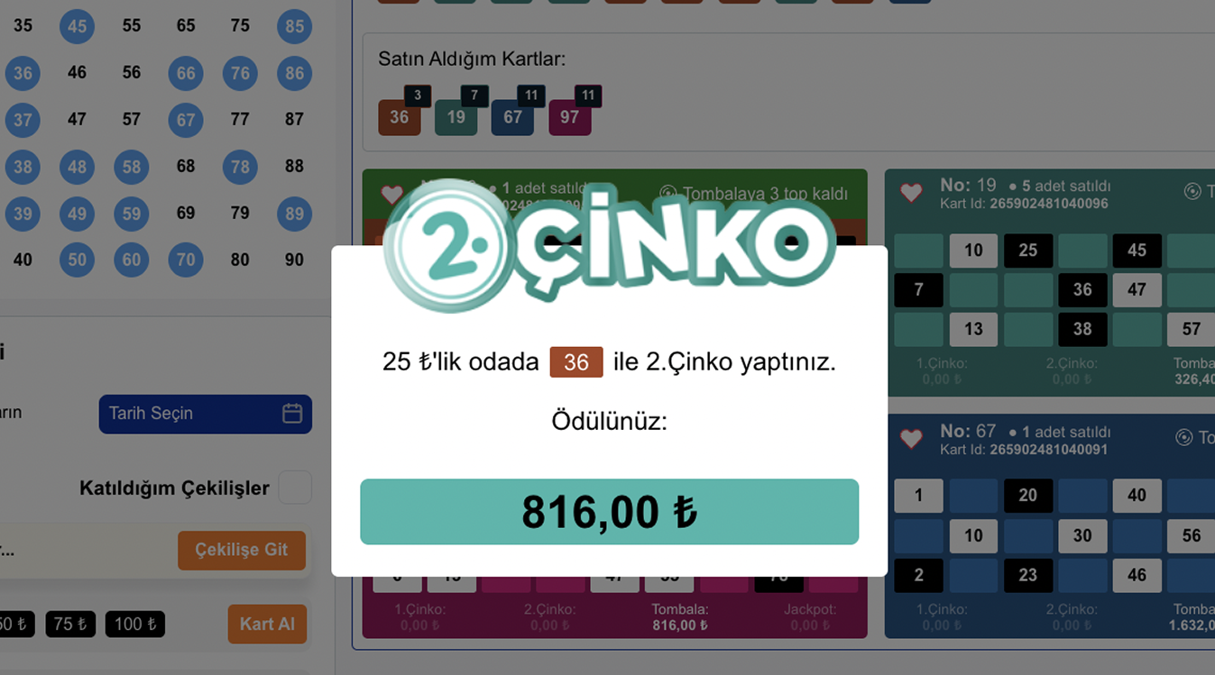- Satılan biletlerin iadesi yoktur. Ancak, Satışın kapanıp çekilişin başlamasından önce ilgili odada yeterince iştirakçi yoksa veya yeterli sayıda kart satılamamışsa odanın çekilişi iptal edilerek, satılan kart bedelleri iştirakçilere satın aldıkları birim Çekilemez Bakiye olarak iade edilir.